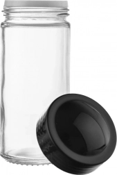 Det sorte plastiklåg med gevind slutter tæt, beskytter indholdet mod fugt og hjælper med at bevare krydderiernes aroma og smag friske længere.
