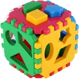 Den klassiske puttekube til de mindste udvikler finmotorik, logisk tænkning og genkendelse af former og farver. De farvede klodser sættes i de matchende huller, og kubens sider er forbundet med tandede kanter for nem samling. Ideel didaktisk legetøj til børn fra 12 måneder.