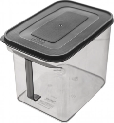 Hold orden i køkkenet og bevar råvarernes friskhed. Den robuste beholder til tørvarer i elegant grå‑gennemsigtig udførelse er ideel til mel, sukker, salt, gryn, ris, bælgfrugter eller morgenmadsprodukter. De gennemsigtige sider gør det muligt at kontrollere beholdningen uden at åbne, og det praktiske håndtag sikrer sikker transport.