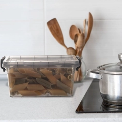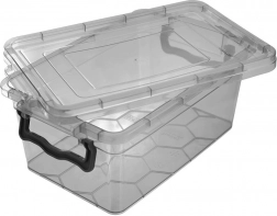 Den praktiske boks på 5 liter er ideel til overskuelig opbevaring af frugt, grønt, tørvarer samt småting i hjemmet, på kontoret eller i værkstedet. To sideclips holder låget sikkert på plads, så indholdet er beskyttet mod fugt og støv. Takket være den klare beholder ser du straks, hvad der er indeni.