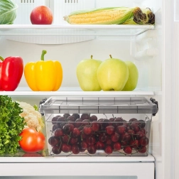 Gennemsigtigt design for øjeblikkeligt overblik, velegnet til opbevaring af både friske og tørre fødevarer i og uden for køleskabet.