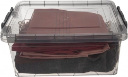 Universal plastboks med et rumfang på 14 l og sikkert låg med klips er ideel til opbevaring af madvarer, tøj og småting. Takket være det gennemsigtige mørkegrå design kan du nemt se indholdet uden at åbne. Materialet er BPA-frit, tåler temperaturer fra -25 °C til +95 °C, er egnet til opvaskemaskine, mikroovn (uden låg), køleskab og fryser. Det tætsluttende låg med to klips beskytter indholdet mod fugt og støv og muliggør sikker transport.