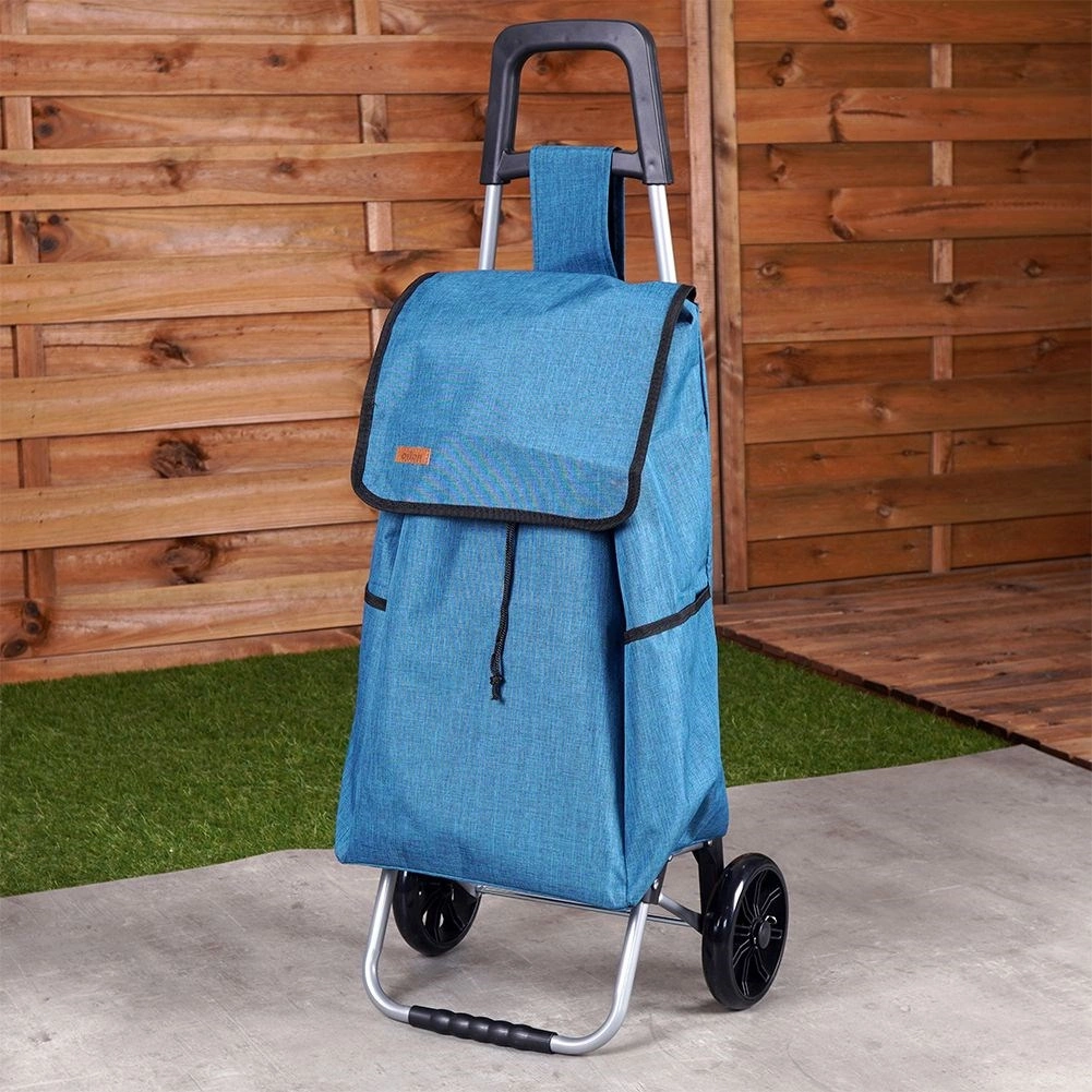 Den lette, men solide indkøbsvogn er uundværlig til både indkøb og rejser. Et ergonomisk håndtag, stabil fod og to store hjul gør den nem at styre og parkere. Den blå taske i en elegant marineblå nuance er aftagelig og let at rengøre.