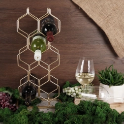 Den åbne, gyldne, hexagonale konstruktion er både funktionel og dekorativ – den forvandler din vinopbevaring til et designelement i køkkenet eller stuen.