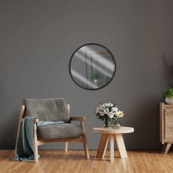 Dette runde vægspejl er et perfekt supplement til stuen, entréen og soveværelset. Takket være den slanke silhuet i sort og den træramme skiller det sig ud i enhver indretning, hvor det visuelt udvider rummet og giver mere lys. Den højtkvalitets spejlflade giver en krystalklar gengivelse til daglig brug.
