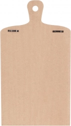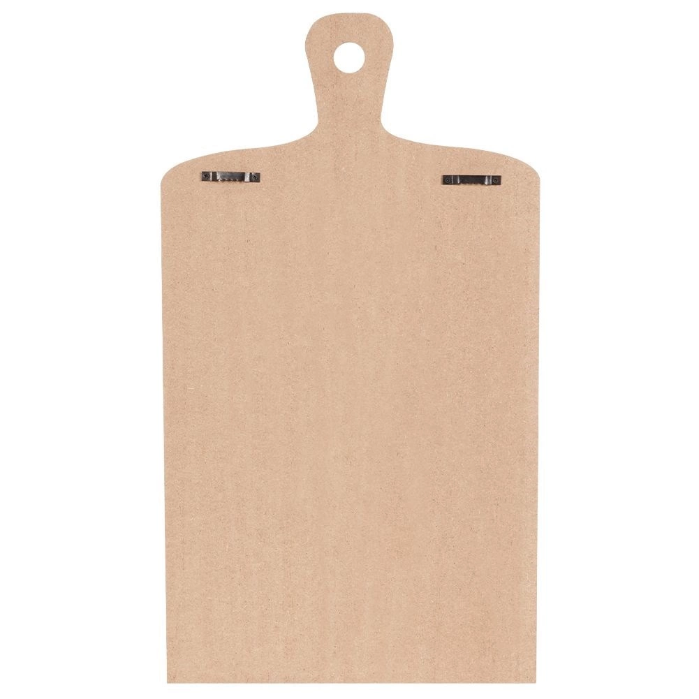 Pulverlakeret metal tåler daglig brug, mens MDF-pladen giver stabilitet og et dekorativt skærebrætsudtryk.