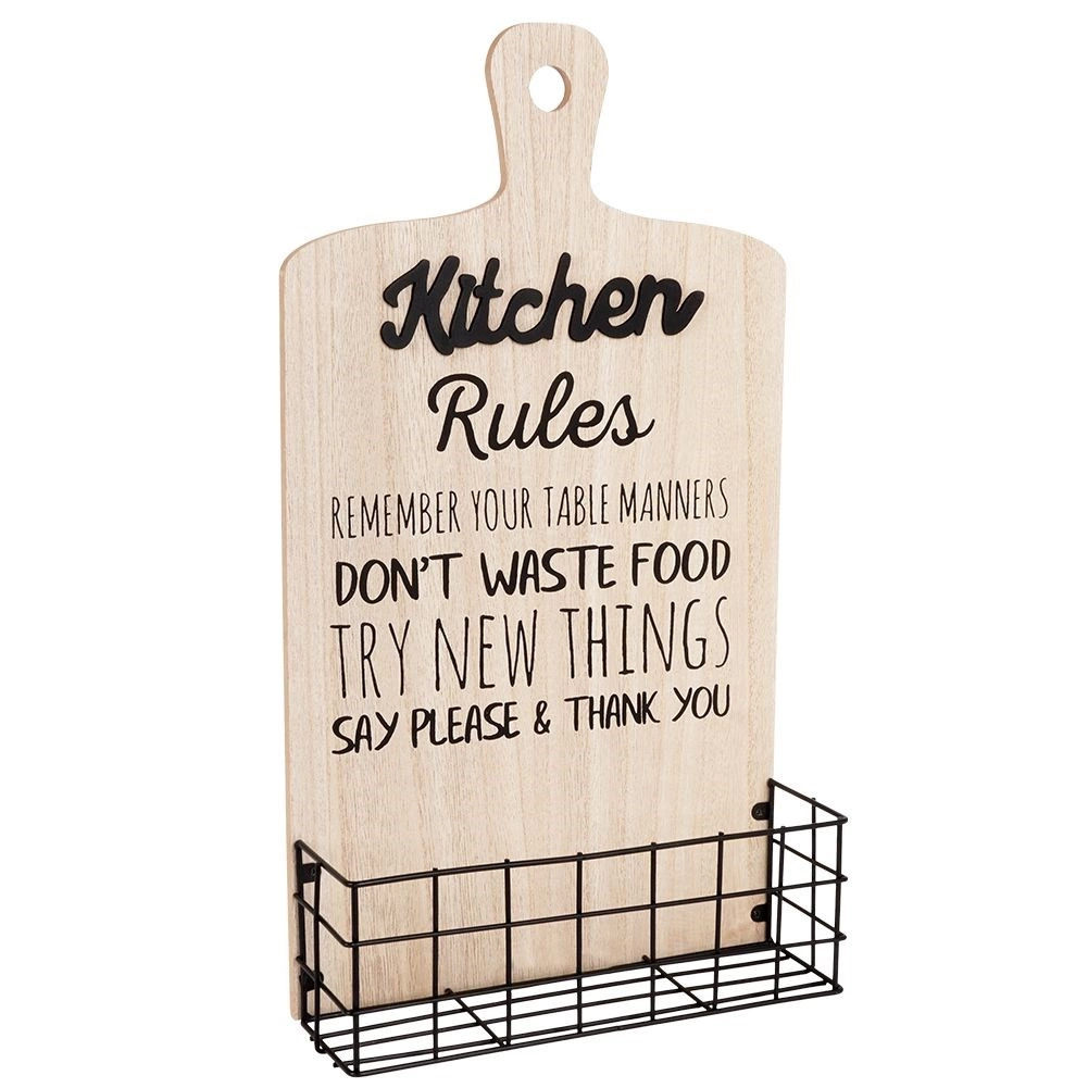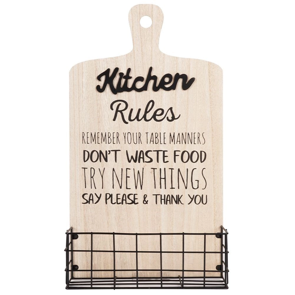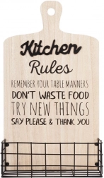 Bring et strejf af industriel stil ind i køkkenet med denne Vilde væghylde. Den forreste kurv af sort, pulverlakeret tråd rummer sikkert krydderier, poser eller køkkenredskaber, mens den bageste MDF-plade, der minder om et træskærebræt, tilfører rummet et hyggeligt præg.