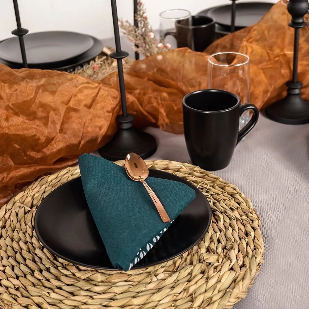 Det minimalistiske udtryk i sort fremhæver de serverede desserter og giver borddækningen et elegant, ensartet look.