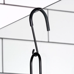 Den gummibelagte krog sidder fast på glasafskærmning eller stang og beskytter samtidig overfladen mod skader.