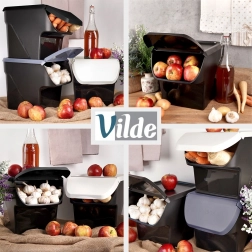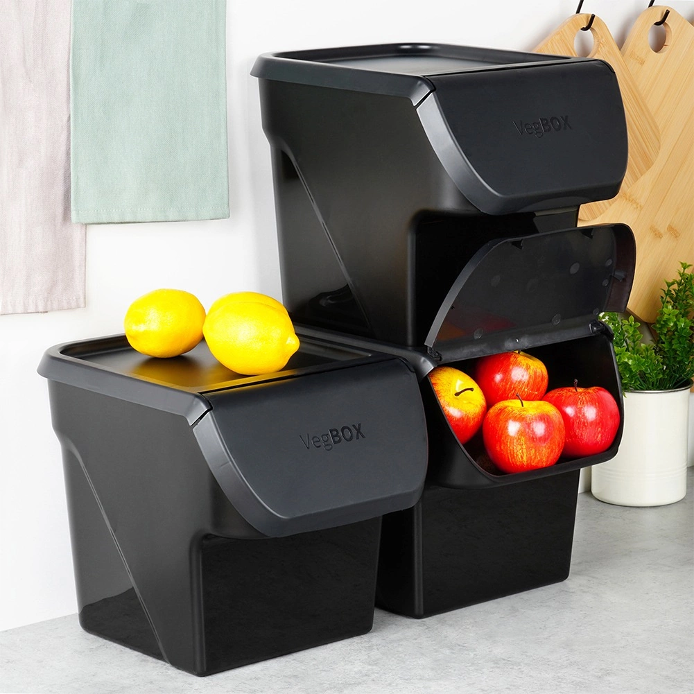 Det rektangulære design og den stabelbare konstruktion sparer plads og holder frugt og grønt overskueligt organiseret.