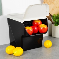 Hold køkken og viktualierum perfekt organiseret. Den robuste opbevaringsboks med forreste klap gør det nemt hurtigt at fylde op og tage indhold uden at skulle fjerne hele låget. Den tidløse kombination af sort beholder og lysegråt låg passer ind i enhver indretning.