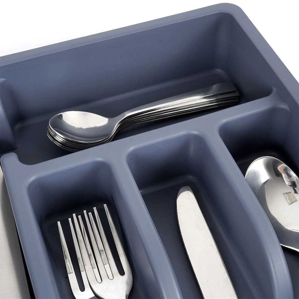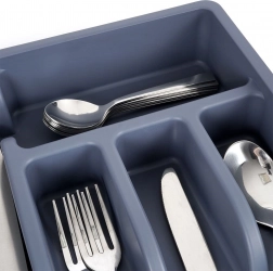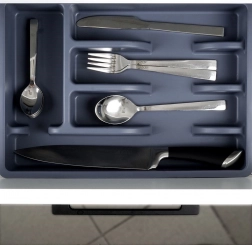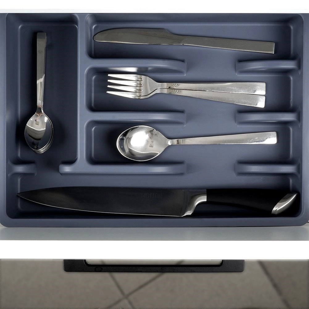 Organizeren er fremstillet af kvalitets, slidstærk plast i moderne grå, så den er let at vedligeholde og holder længe. De indvendige skillevægge forhindrer, at bestikket flytter sig, når skuffen åbnes, hvilket øger komforten i hverdagen.