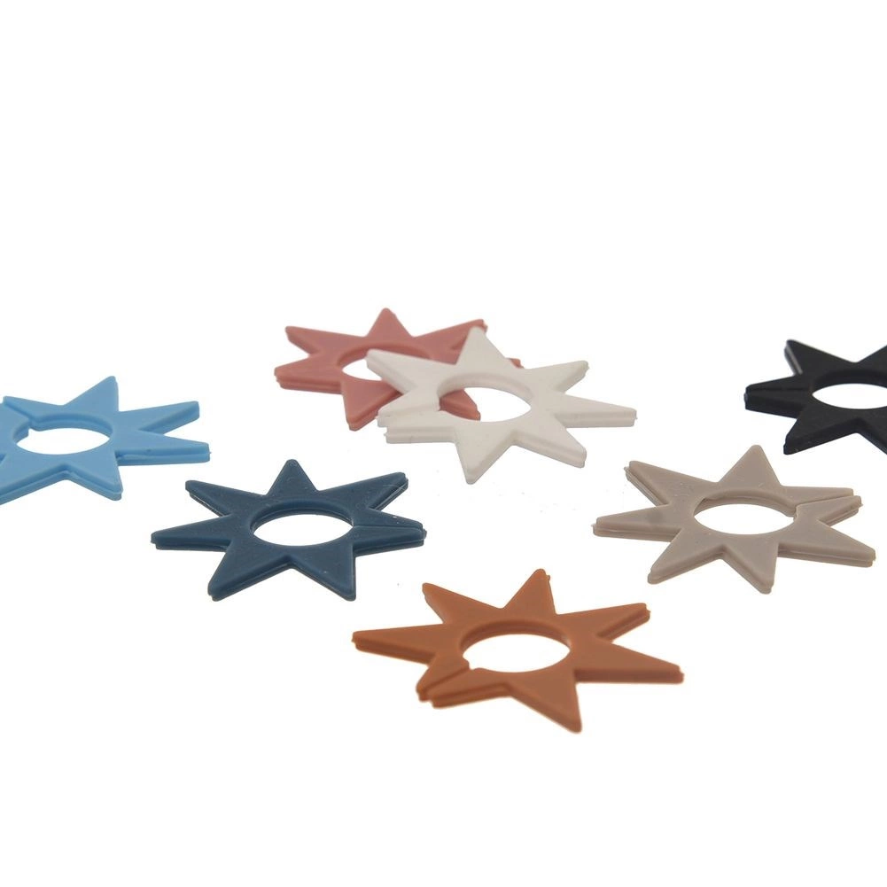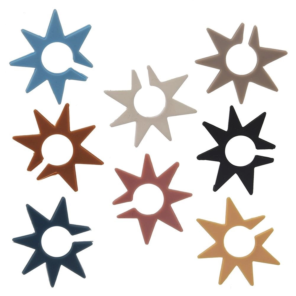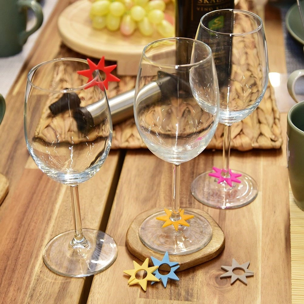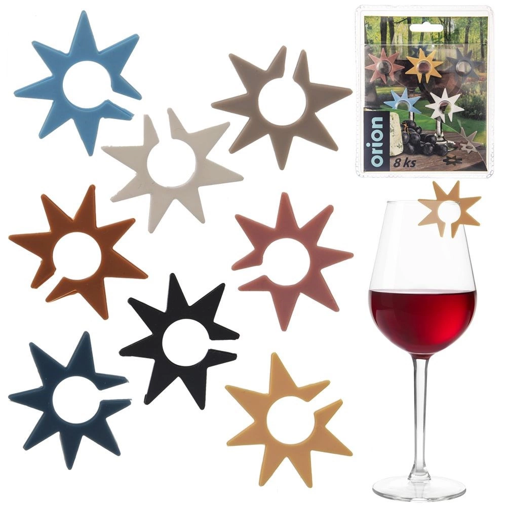 Farvel til forvekslede glas under fester. Silikonemærkerne formet som stjerner med en diameter på ca. 3 cm sættes nemt på kanten eller stilken af glasset og gør hver gæsts drik tydeligt genkendelig. Med 8 iøjnefaldende farver kan alle vælge deres egen.