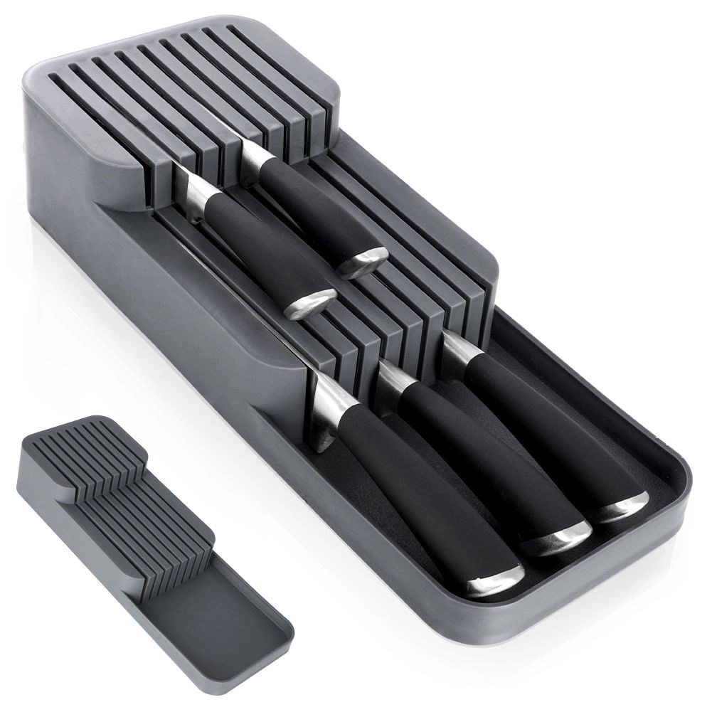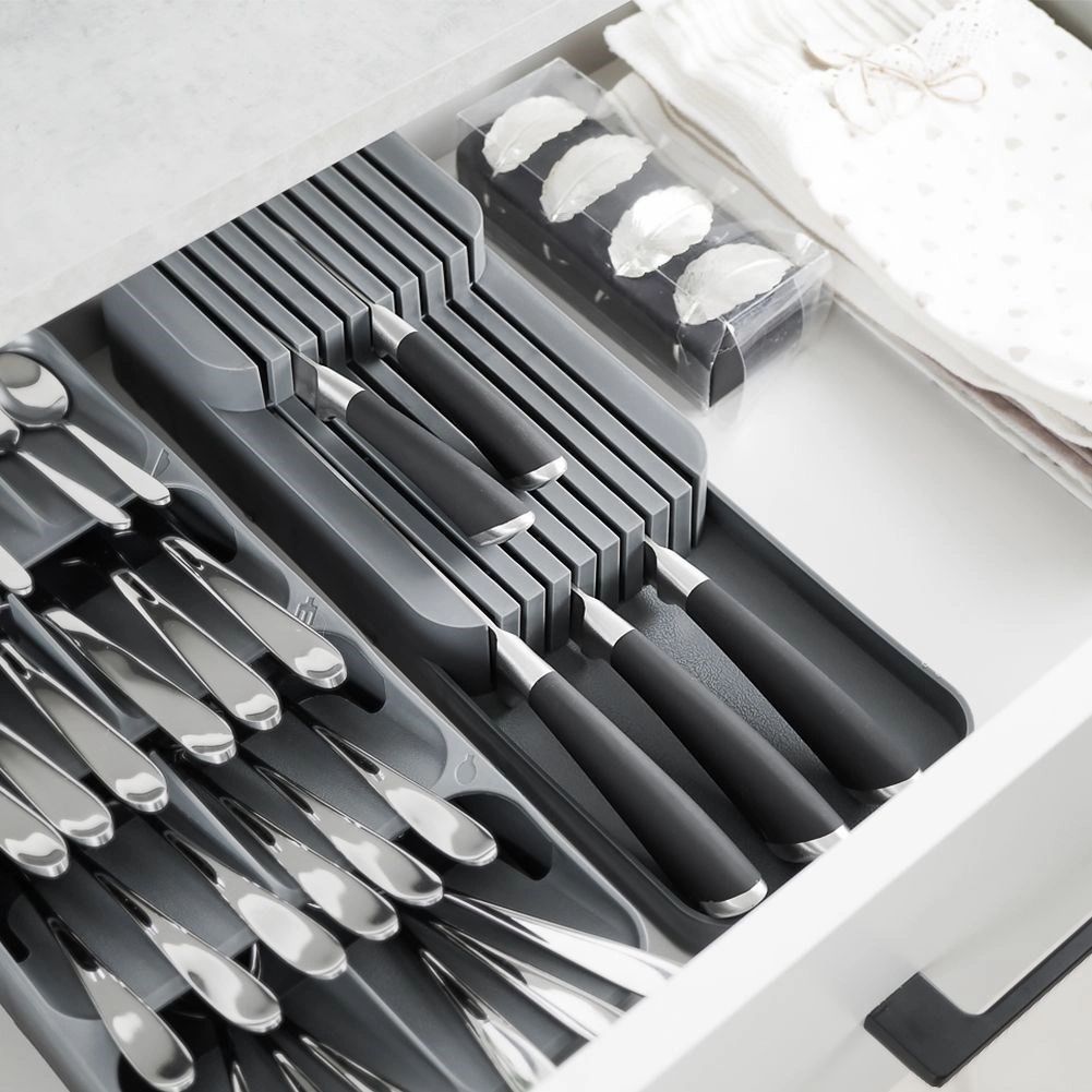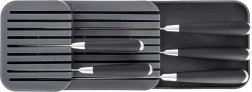 Den trinvise, fler-etagers konstruktion gør det muligt at opbevare flere knive på mindre plads og holde orden i skuffen.