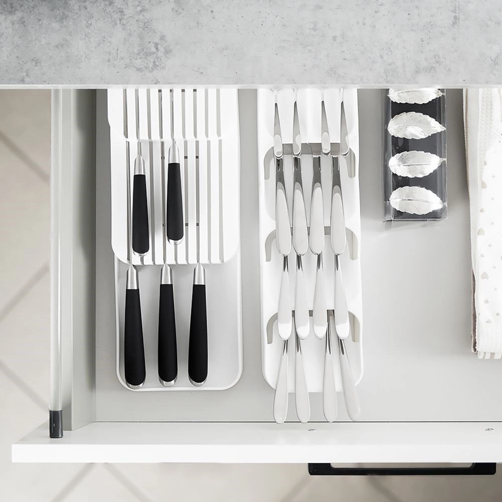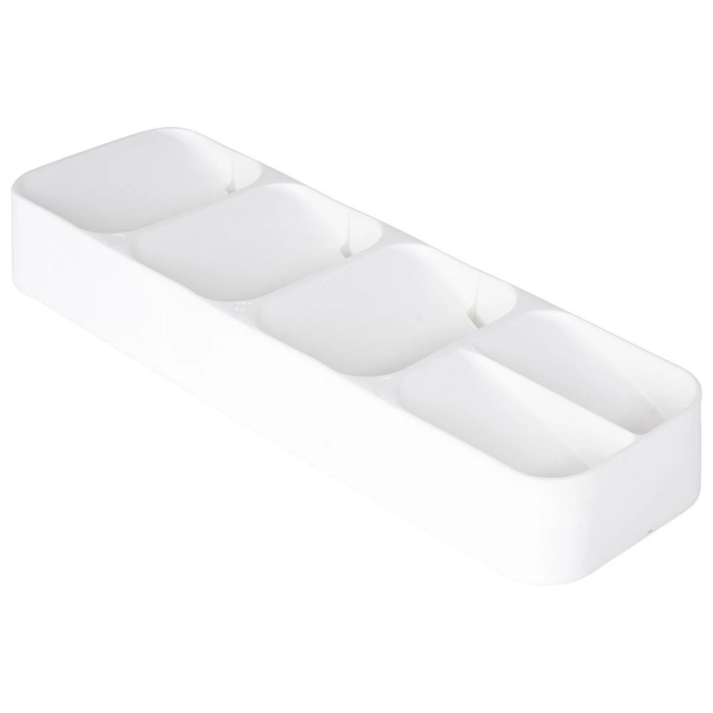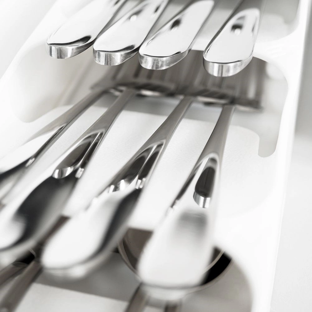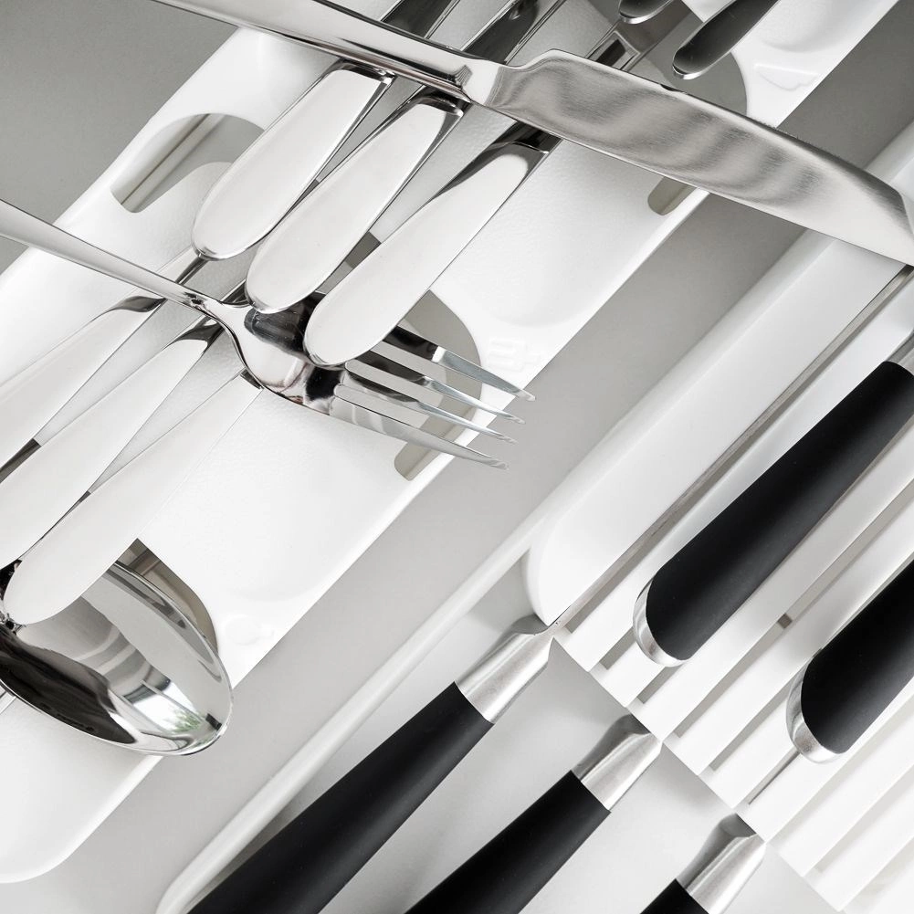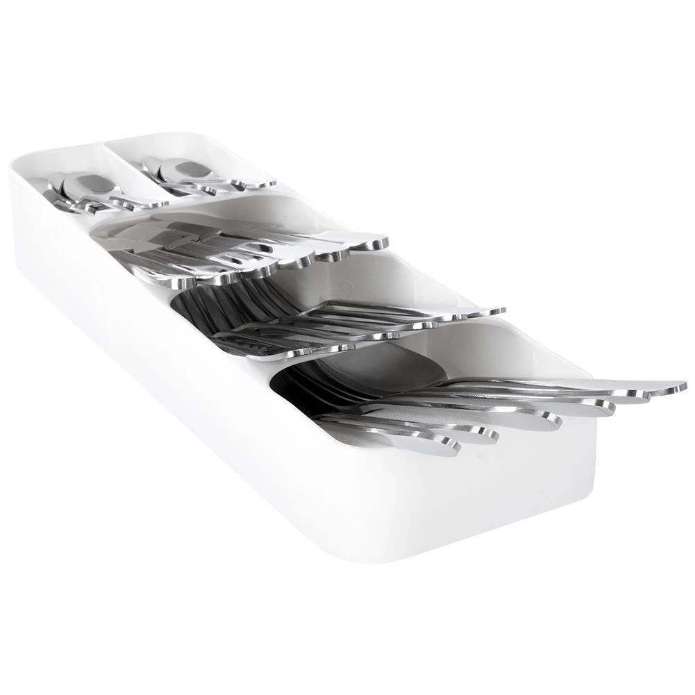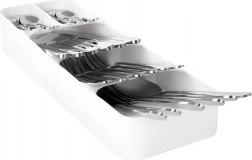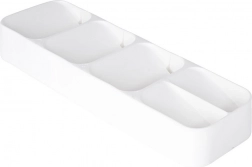 Organisér dit bestik smart og stilfuldt. Denne smalle, men særdeles kapacitetsstærke skuffeindsats i hvid giver hver bestikdel sin plads, forbedrer overblikket og gør den daglige servering hurtigere. Takket være slidstærk plast er den let at rengøre og holder længe.