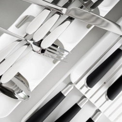 Det slanke format 39 × 11,5 cm sparer plads og rummer samtidig et komplet sæt bestik.