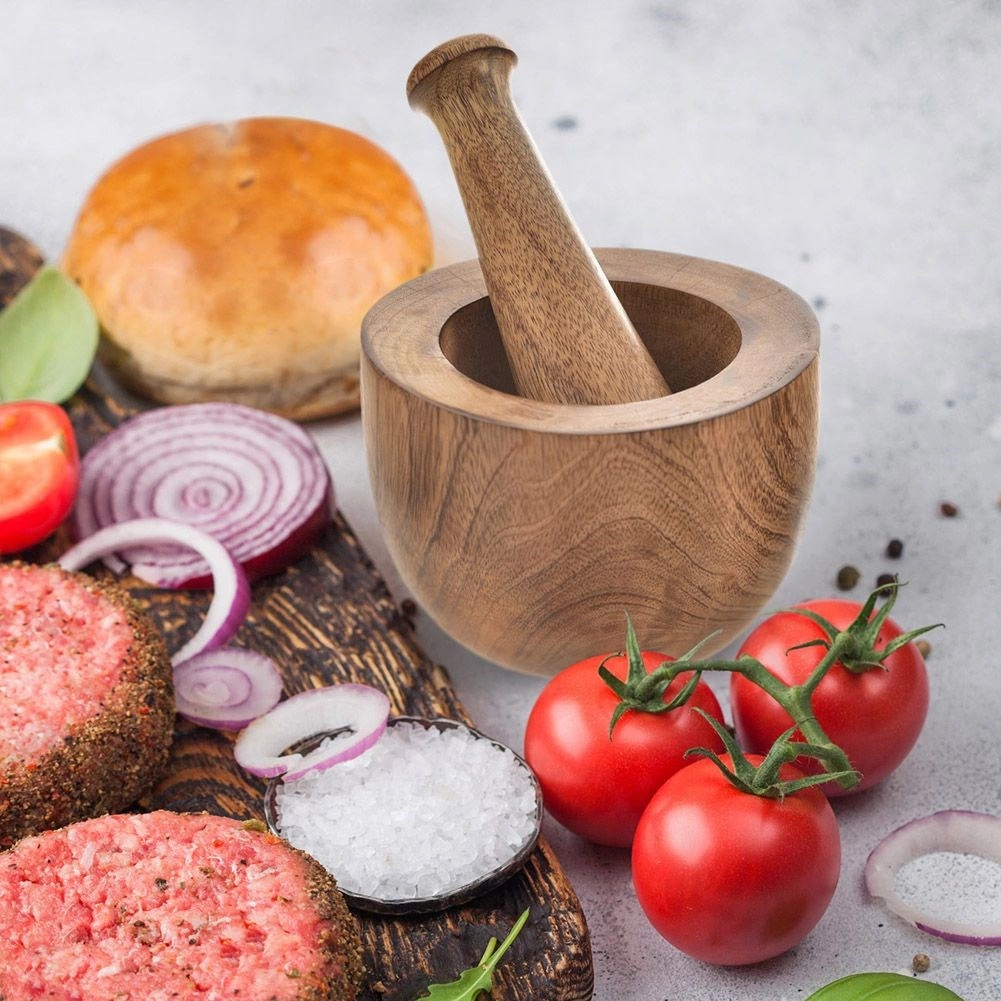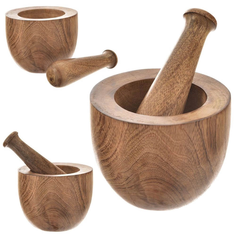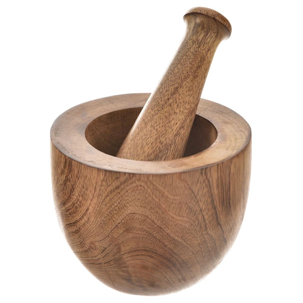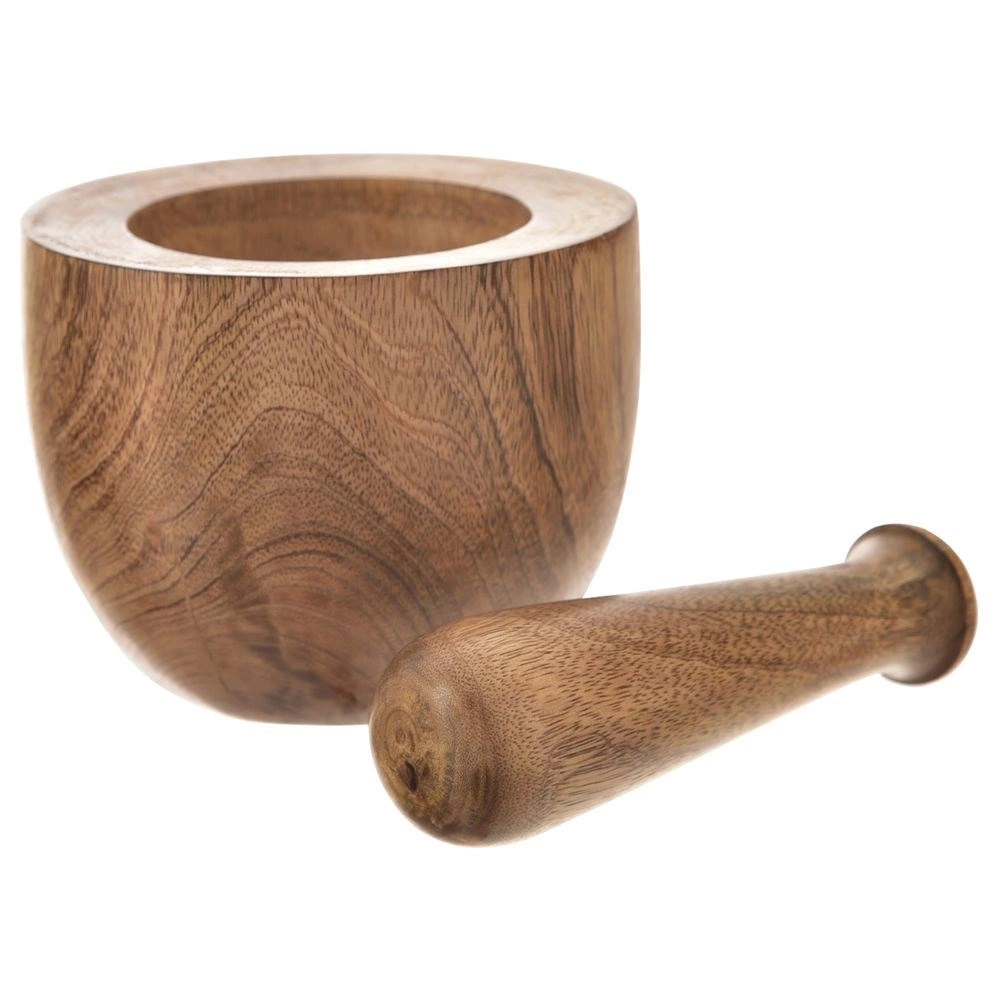 Oplev kraften i ægte, hånddrevet knusning. Morteren af mangotræ giver fremragende stabilitet, et behageligt greb og en naturligt grovere inderside for maksimal friktion. Det får let den fulde smag frem i både friske og hårdere råvarer – fra peber og kommen til frø og nødder.