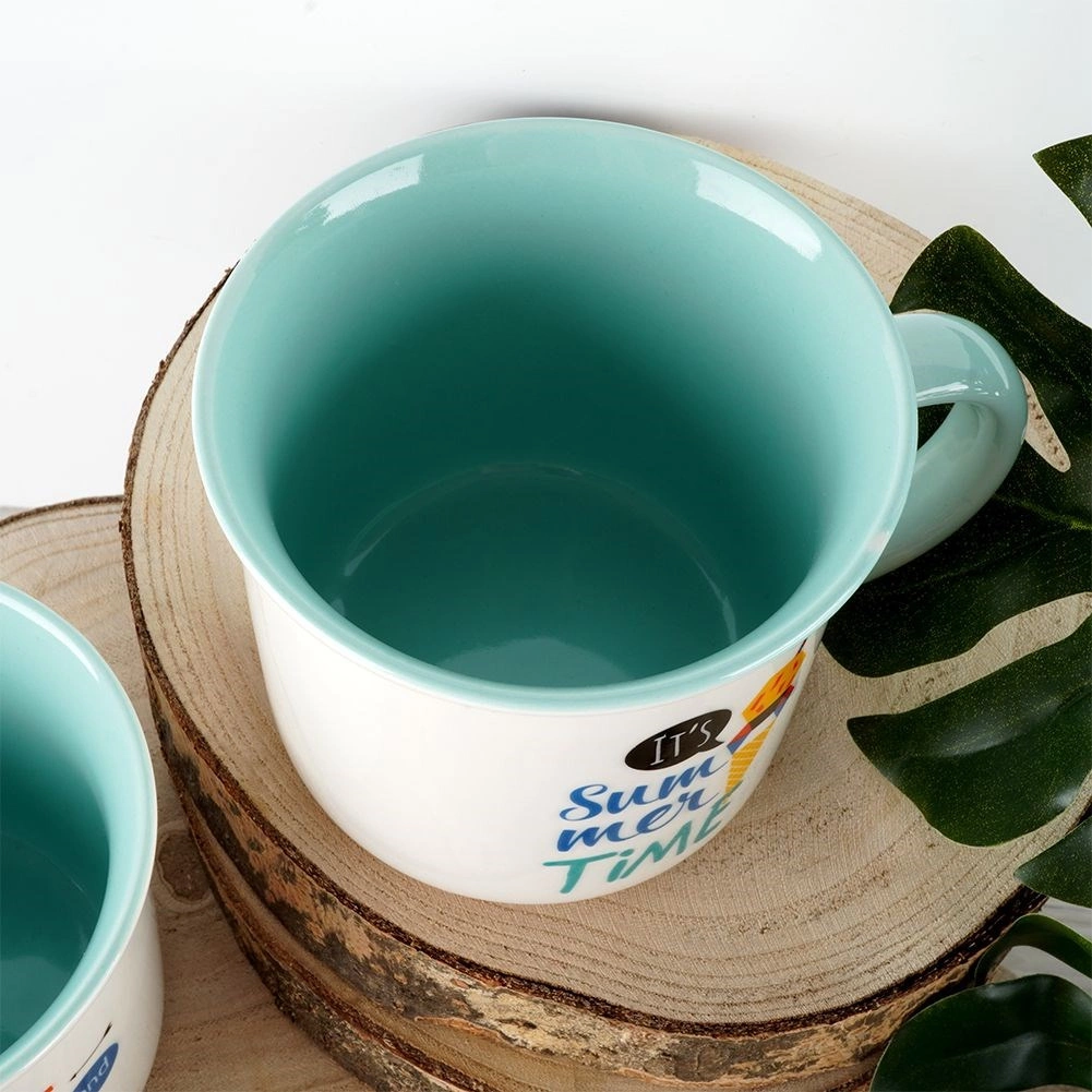 Nyd din yndlingsdrik i en elegant kop af kvalitetsporcelæn. Kombinationen af hvid farve med sommermotiv og mintfarvet inderside giver borddækningen et frisk præg. Koppen ligger behageligt i hånden takket være det ergonomiske håndtag og er perfekt til daglig brug.