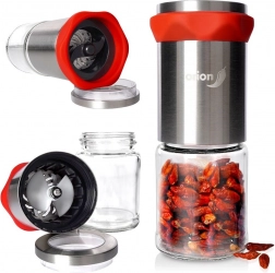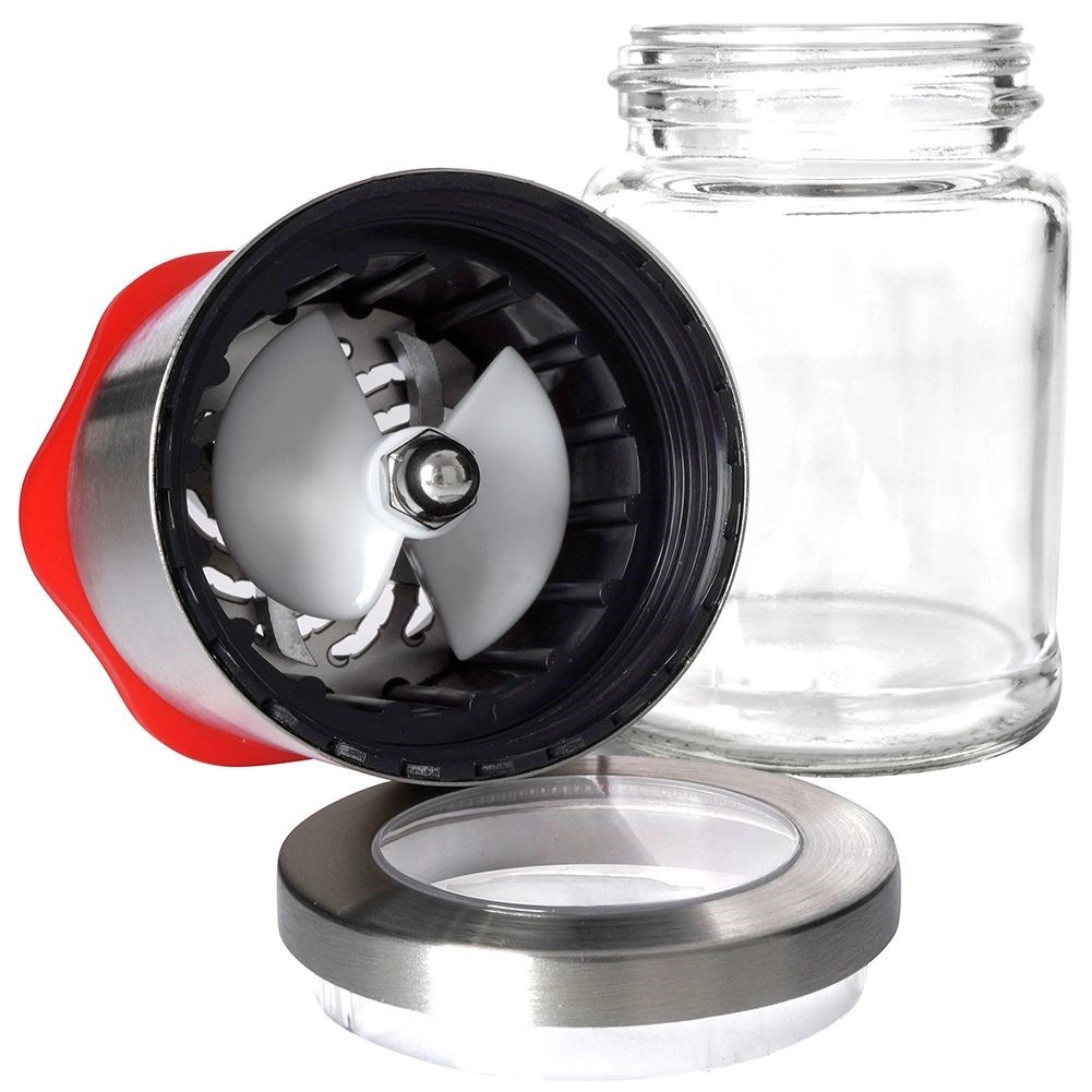Denne manuelle kværn er designet til elskere af markante smage. Takket være den rustfri mekanisme skærer den skånsomt tørrede chilier, krydderier og urter, hvilket bevarer deres intense aroma og smag uden uønsket knusning. Glaskrukken gør det nemt at holde øje med mængde og indhold.