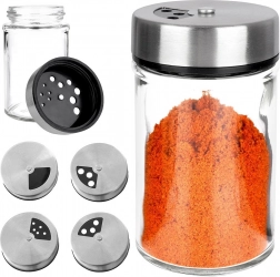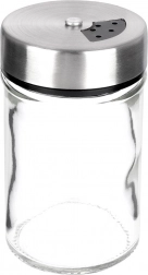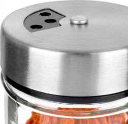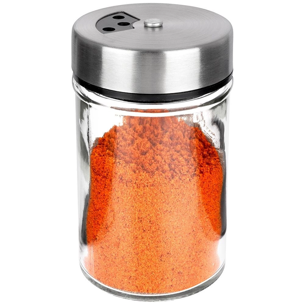 Elegant krydderiglas i klart glas med låg af rustfrit stål og plastdispenser er ideel til daglig brug i køkkenet. Takket være to hulstørrelser kan du nemt tilpasse fin eller grovere dosering og altid hælde præcis den mængde, du behøver. Den lukkelige mekanisme holder krydderierne duftende og friske længere.