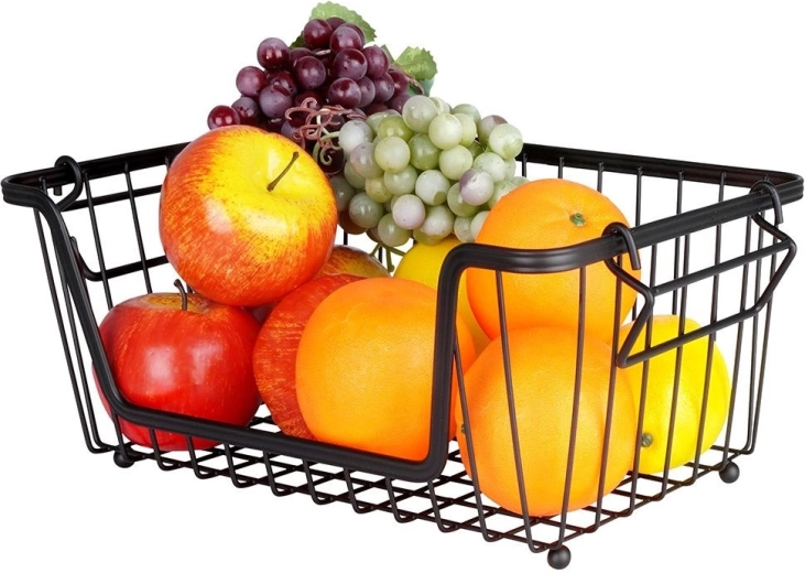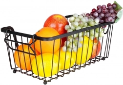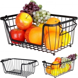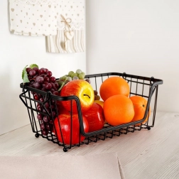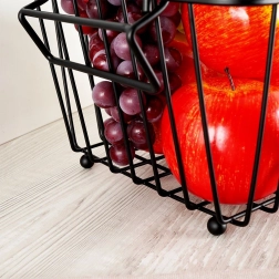 Den elegante frugt- og grøntkurv er et ideelt valg til overskuelig og luftig opbevaring på bordpladen eller hylden. Stålkonstruktionen med sort pulverlak sikrer høj holdbarhed og lang levetid, mens den sænkede frontkant giver hurtig adgang til indholdet.