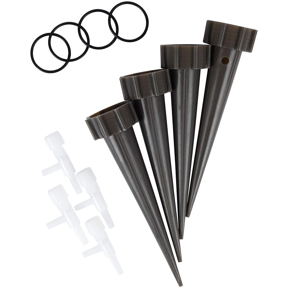 Hver spids er nem at installere – du stikker den blot i jorden ved planten og sætter den omvendte flaske på. Med ventilen kan du præcist indstille flowet efter plantens størrelse og vandingsbehov. Sættet med 4 stk. er perfekt til hjemmet, altanen, terrassen og haven.
