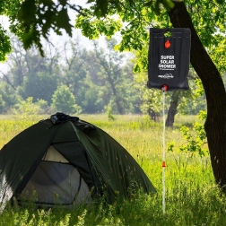 Nyd komforten ved et brusebad også væk fra hjemmet. Denne bærbare solbruser på 15 liter opvarmes af solenergi og giver behageligt varmt vand til camping, i telt, i sommerhus og på stranden. Den kompakte pose er let at transportere og kan hænges på en gren, krog eller stativ.
