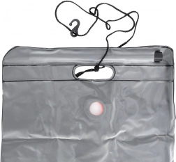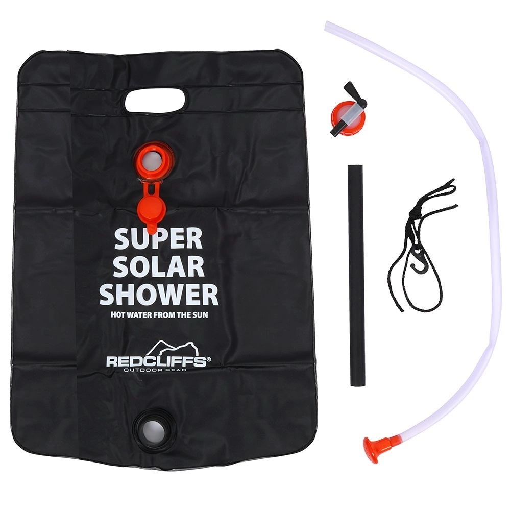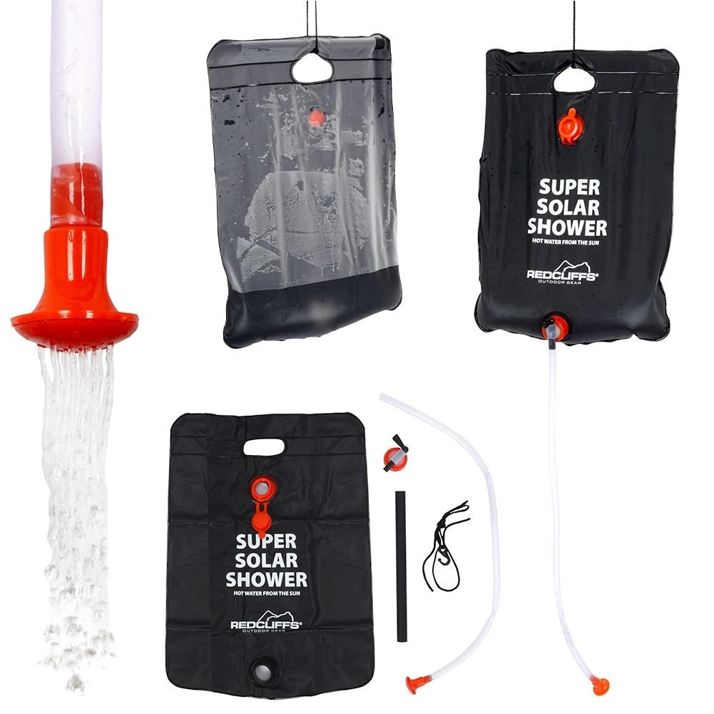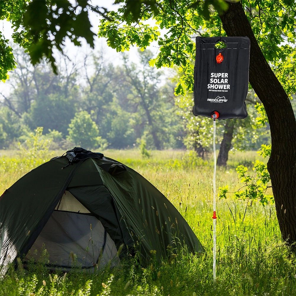 Det robuste PV-plast sikrer lang levetid og tryghed ved hyppig brug i det fri. Fyld blot med vand, læg den i solen, og efter nogle timer har du varmt vand op til omkring 50 °C. Integreret ophæng, ventil og bruseslange gør den daglige hygiejne på farten mere behagelig.