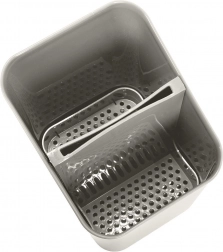 Den perforerede bund og den udtagelige indsats sørger for, at vandet løber nedad, så bestikket ikke står i fugt. Køkkenbordet forbliver rent og tørt.
