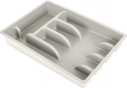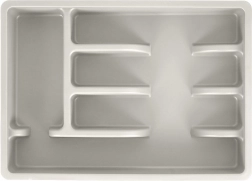 Organisér bestik og køkkenredskaber i overskuelige sektioner og udnyt skuffepladsen maksimalt. Den grå plastorganizer er holdbar, stabil og passer i de fleste standardskuffer takket være de universelle mål. En ideel løsning til et rent og praktisk køkken.