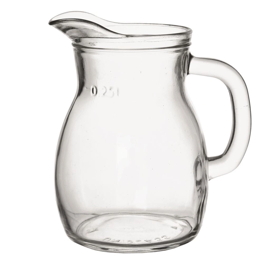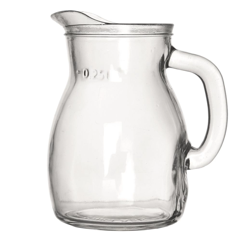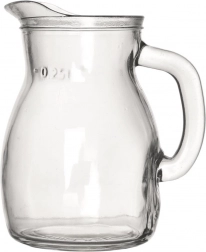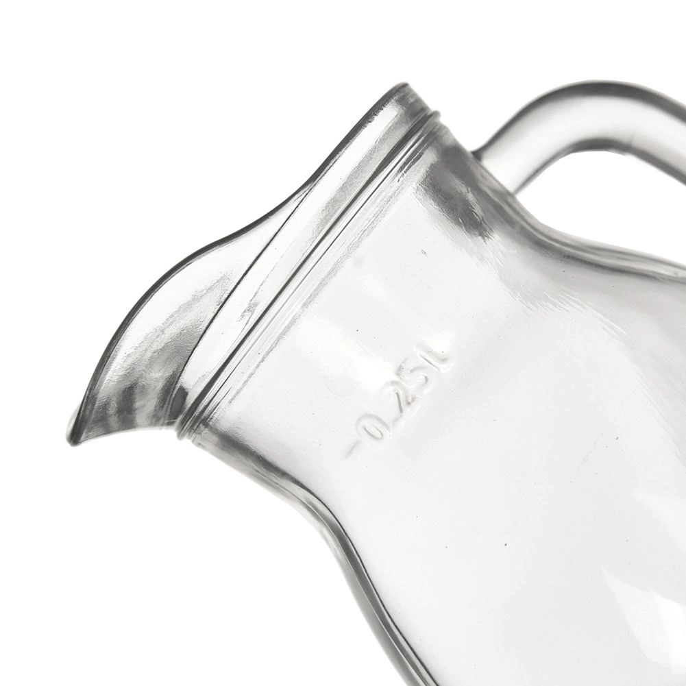 Den alsidige glaskande er perfekt til både køkkenet og professionelle miljøer. Det klare design passer elegant til enhver borddækning og gør det nemt at kontrollere mængden af drik. Den praktiske fremhævning på 0,25 l gør serveringen præcis.