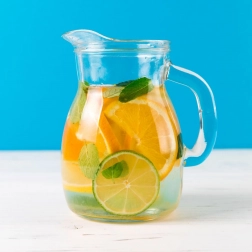 Perfekt til citronade, infused vand eller sangria med is og frugt – det transparente glas fremhæver smukt farver og ingredienser.