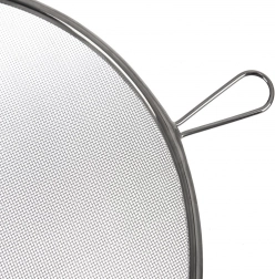 Nettet er lavet af et tæt rustfrit stålnet med en solid metalramme. Det er holdbart, let at rengøre og tåler opvaskemaskine. Den universelle størrelse passer til de fleste pander og gryder op til 30 cm, og den multifunktionelle anvendelse er også praktisk som si eller overhældingssigte.