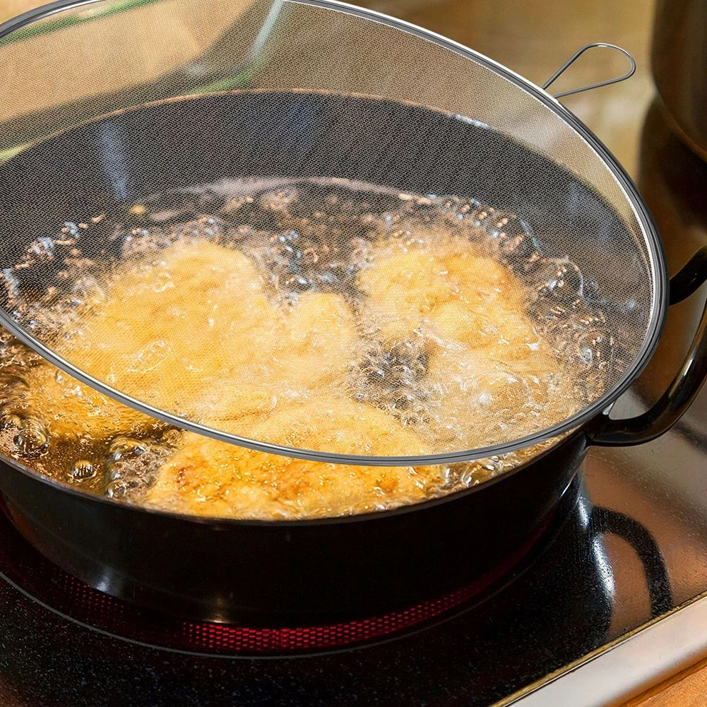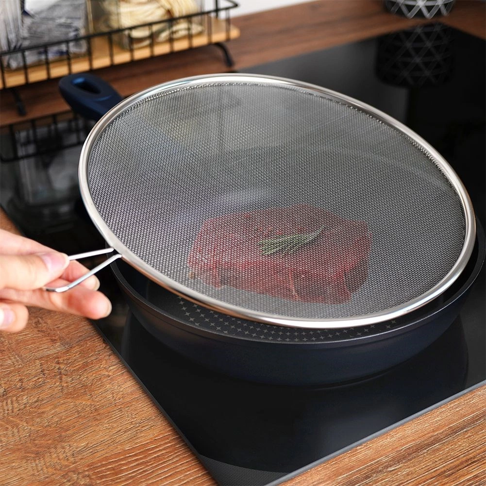 Det fine rustfrie stålnet opfanger dråber af olie og saucer, mens dampen slipper frit ud – madlavningen forbliver ren og sprød.