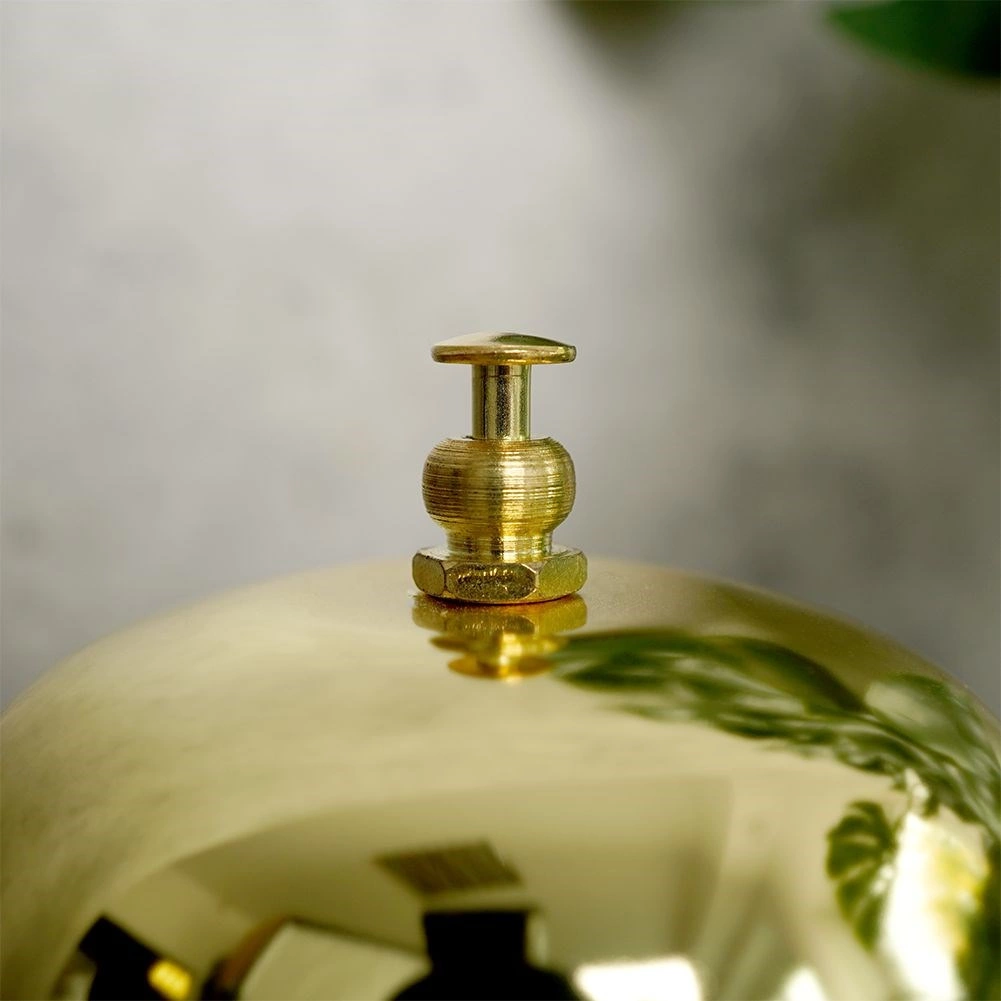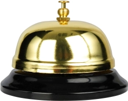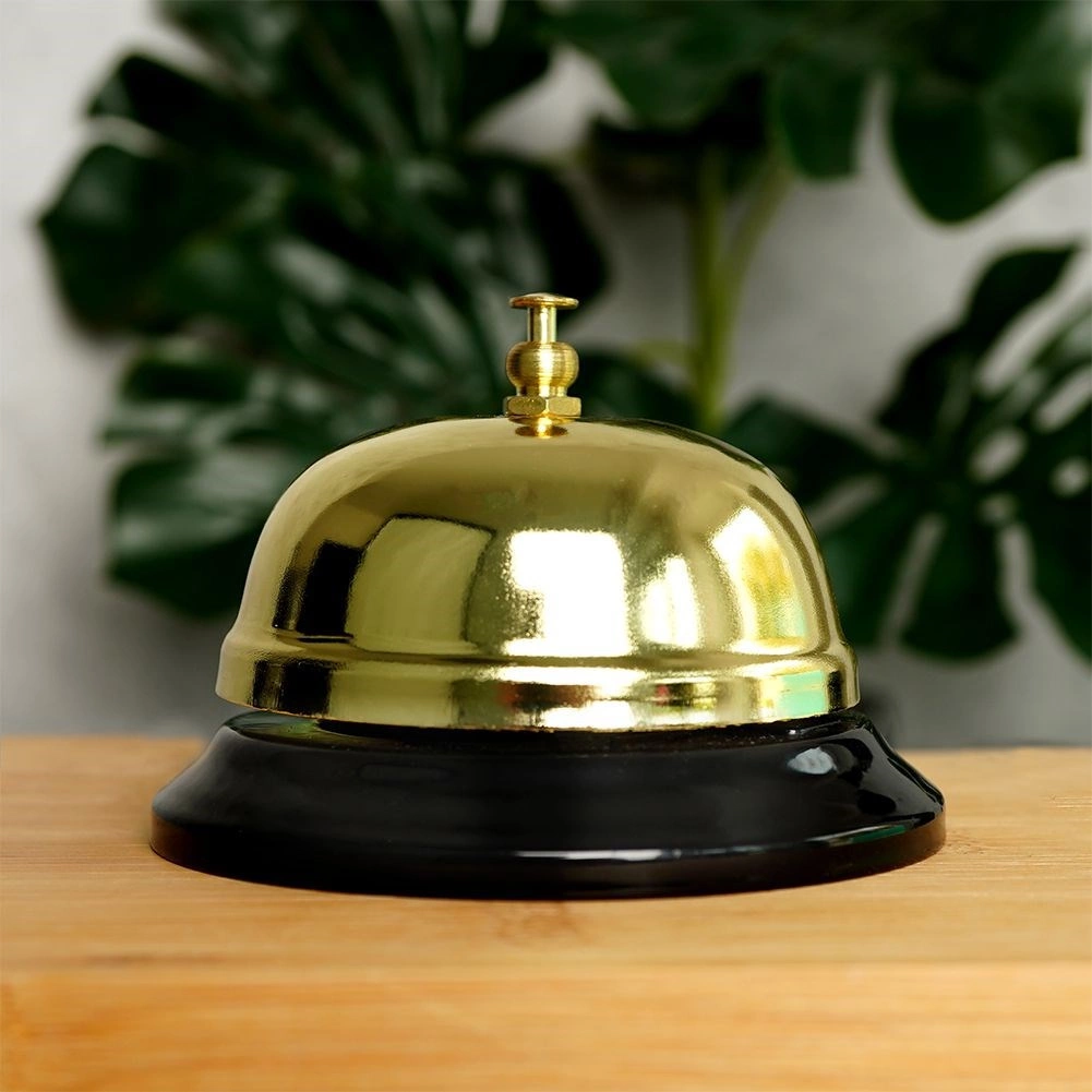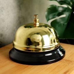Den elegante gyldne bordklokke passer til skranker, receptioner og kasser. Med de kompakte mål 8,5 × 6 cm fylder den minimalt, men tilkalder pålideligt personale. Det minimalistiske design i guld med sort base matcher let enhver indretning.