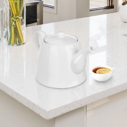 Den populære og praktiske kande i hvidt porcelæn komplementerer dit spisestel og gør det nemt at tilberede større mængder af din yndlingsdrik til både familie og gæster. Takket være det solide håndtag og den ergonomiske tud er ophældningen jævn og uden dryp, mens det velsiddende låg hjælper med at holde drikken varm længere.