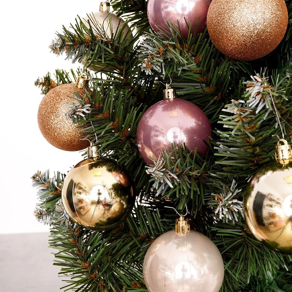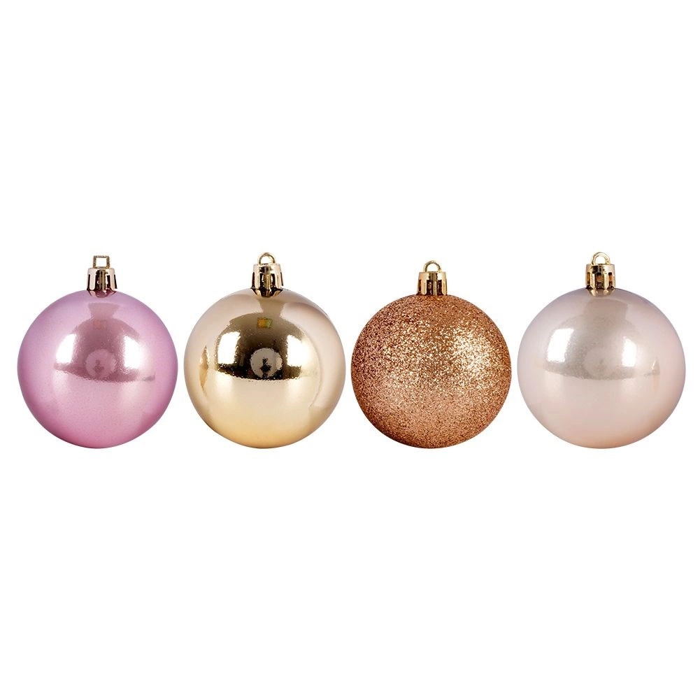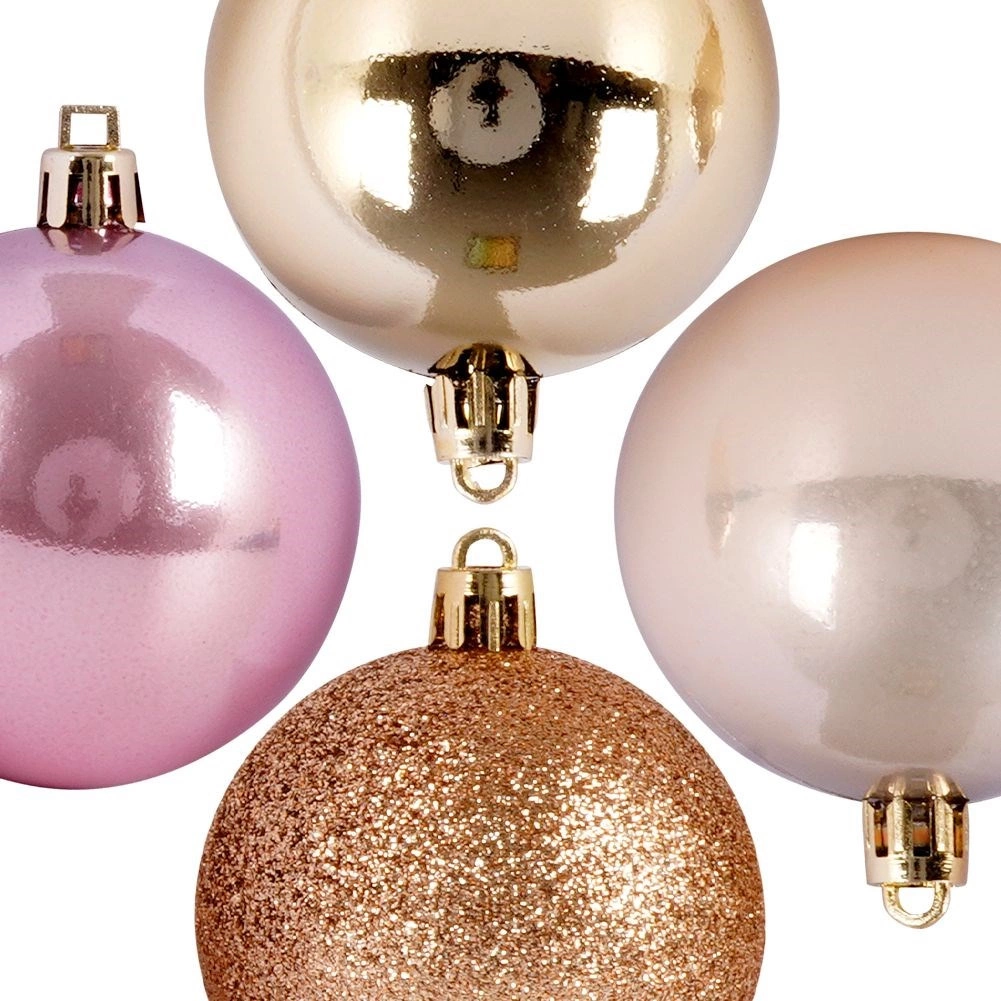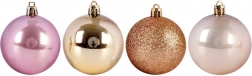 Løft din julepynt med et alsidigt sæt på 9 uknuselige ornamenter i populære nuancer af rosa, champagne og guld. Kombinationen af blank, mat og glitter giver træet og dekorationerne et stilrent og moderne udtryk, der passer perfekt i både klassiske og moderne interiører.