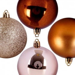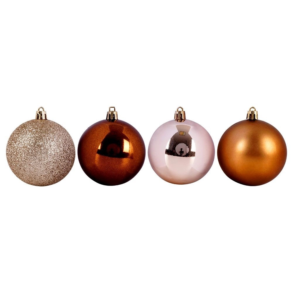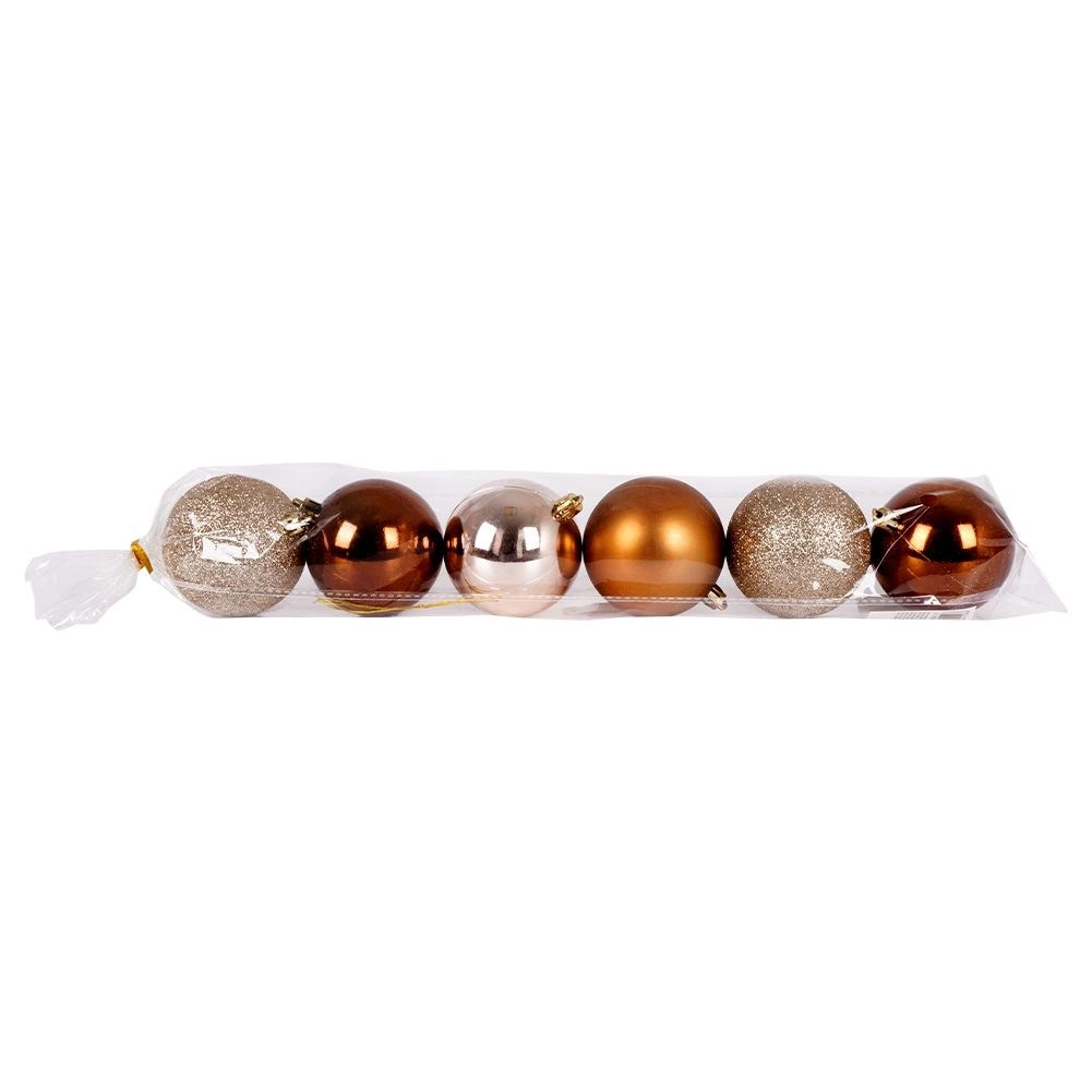 Dette alsidige sæt med 6 julekugler kombinerer forskellige overfladefinish for en imponerende, lagdelt effekt på juletræet og i dekorationer. Det holdbare design i kvalitetsplast efterligner glasets udseende, men er langt mere praktisk og sikkert.