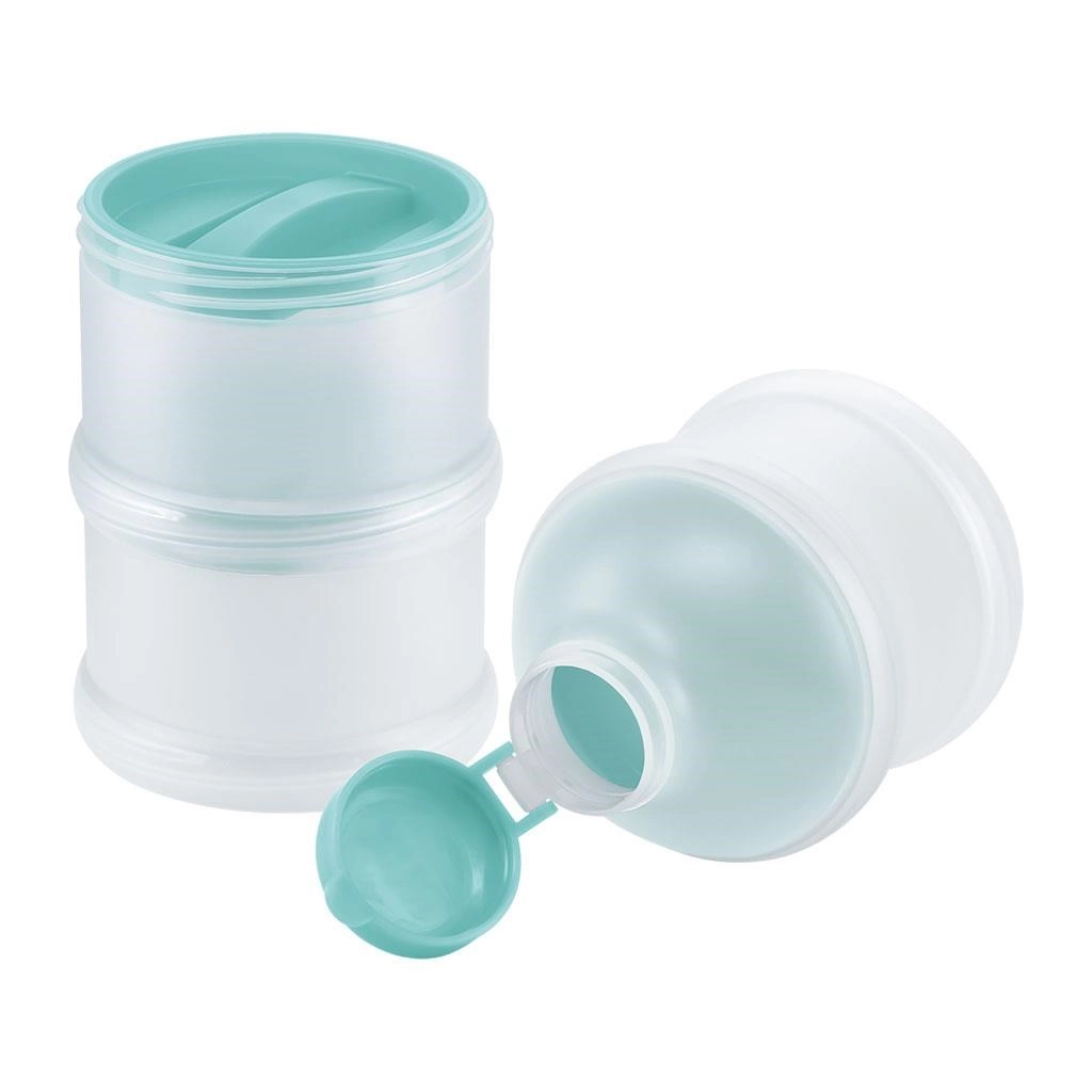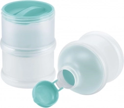 NUK-doseringsbeholderen i mint gør det nemt at forberede mælk til din baby både hjemme og på farten. De tre praktiske beholdere kan bruges hver for sig eller samlet, præcis efter hvor mange portioner du har brug for. Med det skruelige tudlåg med tragt løber pulveret direkte ned i flaskens hals, så tilberedningen er hurtig, ren og hygiejnisk.