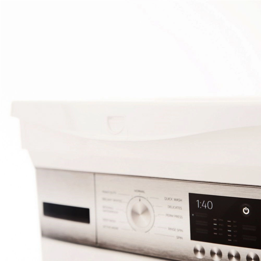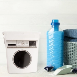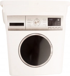 Hold orden i vaskerum og badeværelse. Beholderen med vaskemaskine-print tilbyder rigelig plads til vaskemidler og hjælper med sit lukbare låg med at bevare deres friskhed og duft. Den solide udførelse i kvalitetsplast i hvid er let at vedligeholde og passer godt ind i enhver indretning.