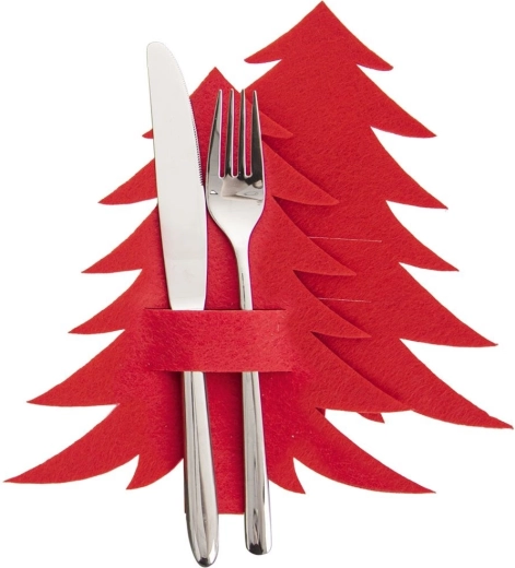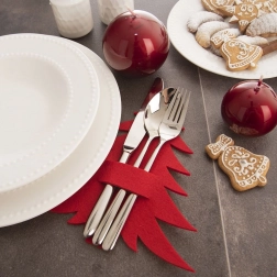 Giv din borddækning en unik stemning. Filtlommer i træform i en dyb rød farve fremhæver bestikket smukt og passer til de fleste juledekorationer og spisestel. Ideelle til vintersæsonen, festmiddage og familiesammenkomster.