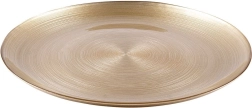 Den flade glastallerken i elegant gylden farve giver din borddækning et festligt præg. Takket være den høje kvalitet og det tidløse design egner den sig både til daglig brug og til særlige anledninger. Den matte struktur på undersiden med fine horisontale striber skaber et effektfuldt udtryk og god stabilitet på bordet.