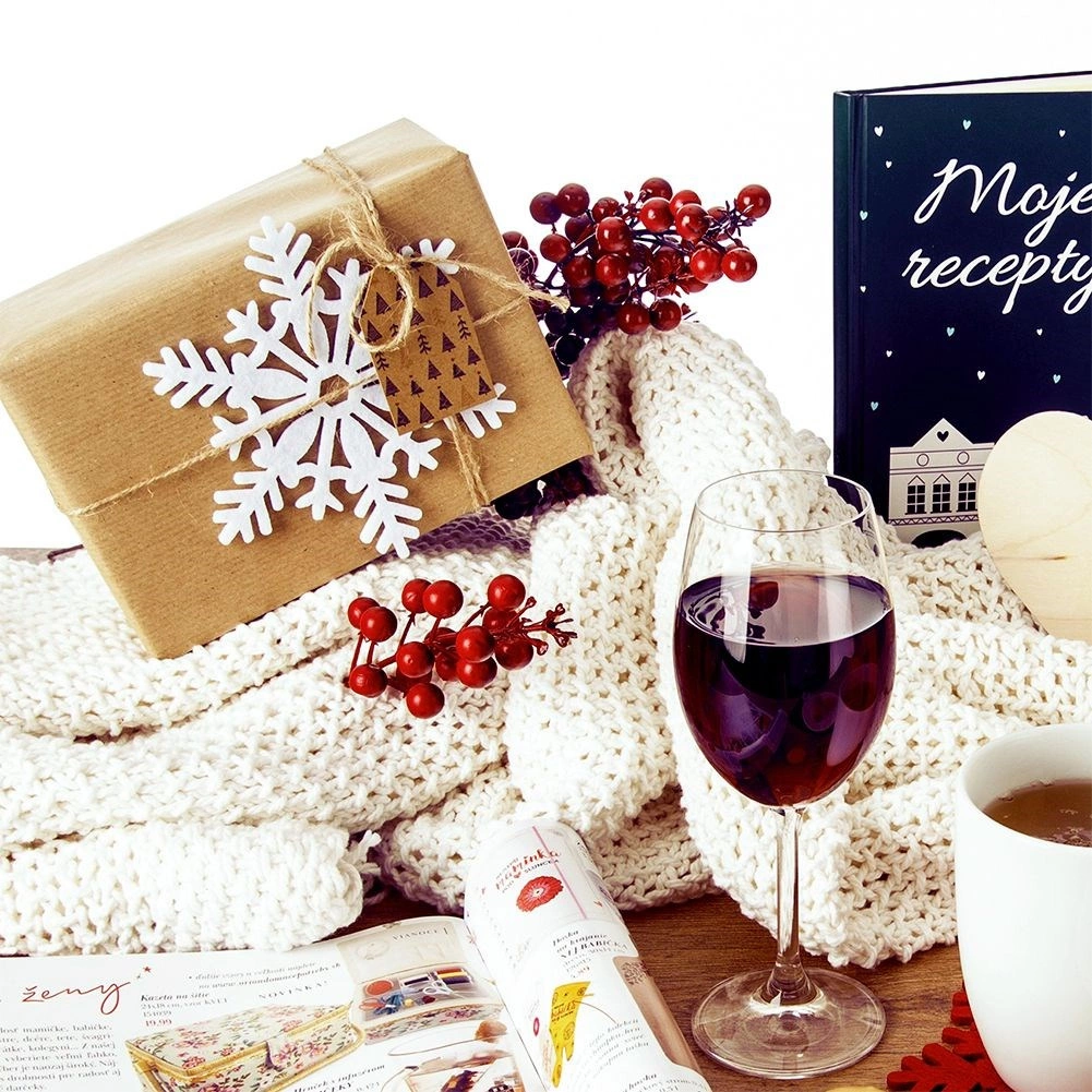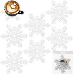 Stilfulde hvide underlag af kraftig filt beskytter pålideligt bordoverfladen mod varme, fugt og ridser. Det vinterlige motiv med snefnug skaber straks en højtidelig atmosfære og gør enhver indretning hyggeligere. Underlagene er lette at opbevare, lette i vægt og behagelige at røre ved.