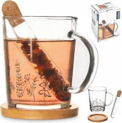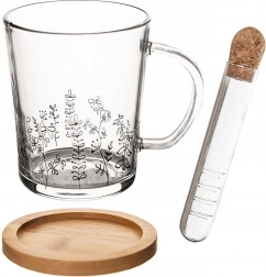 Nyd din yndlingste eller urter med elegance. Glaskoppen på 400 ml suppleres af en glas-infuser med korklåg og en glat bambusunderkop. Det transparente glas med fine plantemotiver fremhæver drikkens farver og forvandler den daglige drik til et lille ritual.