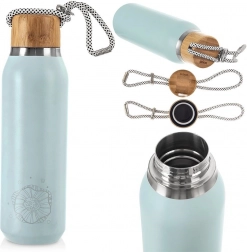 Det naturlige bambuslåg med skruegevind og silikonepakning sikrer tæthed. Den integrerede strop gør det nemt at bære og hænge op.