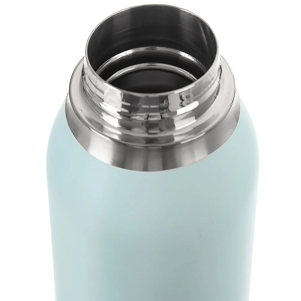 Den pulverlakerede overflade forhindrer at flasken glider ud af hånden, og den brede hals gør det nemt at rengøre samt at putte isterninger eller frugt i.