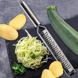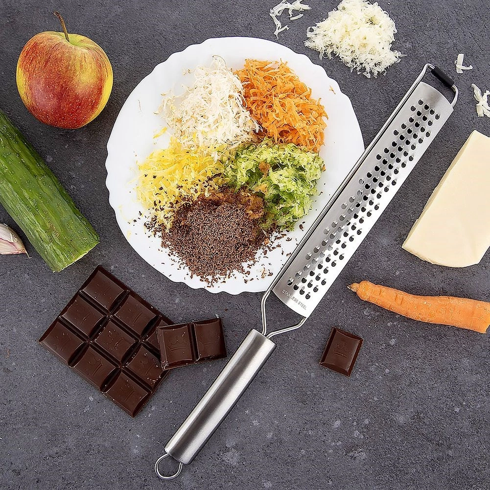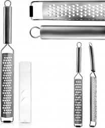 - Finrivning og zester (grøntsager, hårde oste, hvidløg, nødder, chokolade, citrusskal, krydderier)