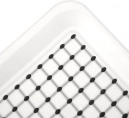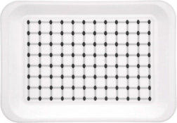 Den holdbare køkkenbakke af kvalitetsplast i hvid med grå detaljer er designet til sikker og komfortabel servering. Takket være den skridsikre behandling på både over- og underside står kopper, glas og tallerkener stabilt, og bakken glider ikke på bordet. Hævede kanter gør det nemt at gribe og minimerer risikoen for spild.