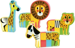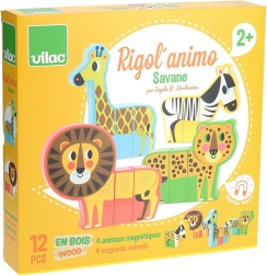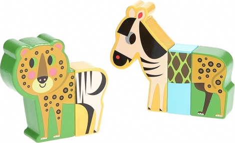 Træpuslespillet Glade Safari giver børn fra 2 år en anderledes form for leg: Hvert dyr består af solide dele med skjulte magneter, som klikker blødt sammen. Delene kan byttes mellem dyrene, så der opstår sjove “hybrider”, der stimulerer fantasi og nysgerrighed.
