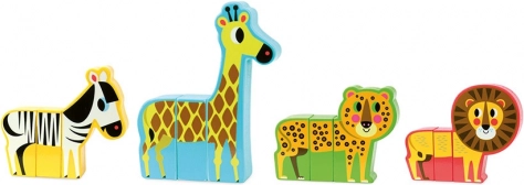 Fire safari-dyr med magnetiske dele kan kombineres på kryds og tværs – perfekt til at udvikle kreativitet og forestillingsevne.
